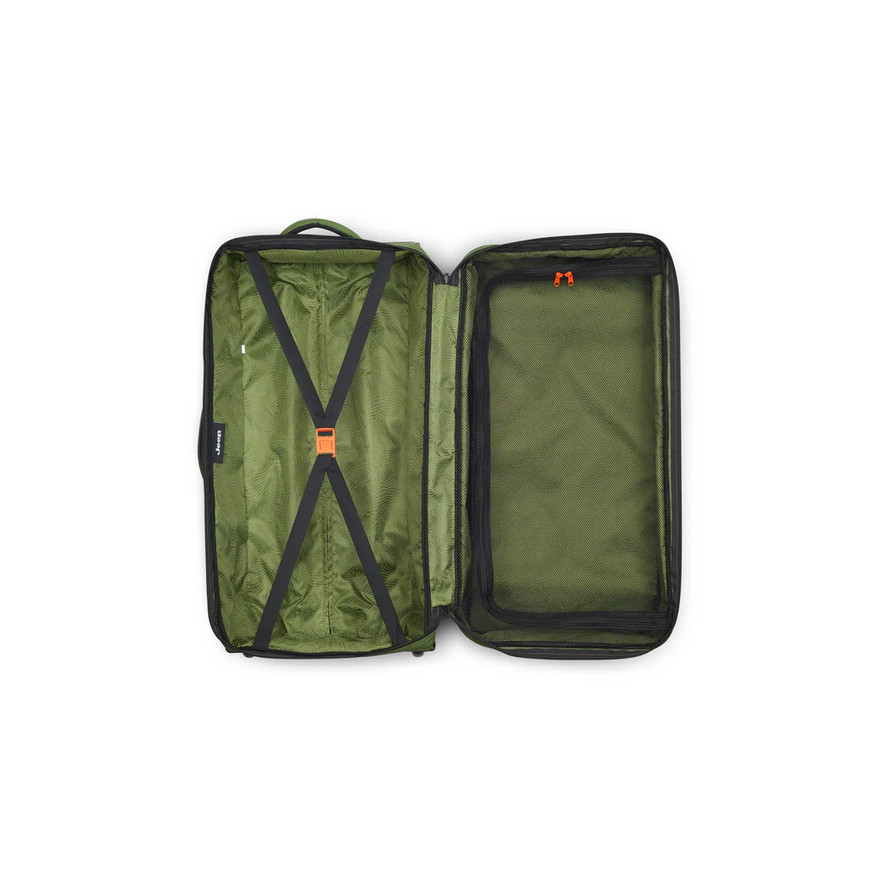 Нова колекція JEEP запрошує вас жити повноцінним життям, а широкий вибір багажу забезпечує максимальний комфорт, щоб ви спокійно могли вирушати в будь-яку подорож. Ця дорожня сумка має дві посилені ручки: верхню та бічну, для вашої зручності. Ергономічне керування. Система візка та 2 колеса забезпечують легку мобільність та оптимальний комфорт під час ваших подорожей. Дуже практичний внутрішній простір оснащений ременями для фіксації особистих речей та сітчастим роздільником на блискавці. Виготовлена з водовідштовхувального та надміцного матеріалу (POLYESTER).