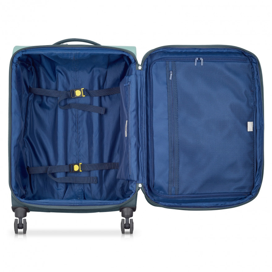 Валіза серії Delsey BROCHANT 3.0 225781000(середній). Цей багаж оснащений кодовим замком TSA для додаткової безпеки під час подорожі літаком. Це дозволяє вам захистити свій багаж за допомогою особистого коду, а Американське управління з безпеки на транспорті (TSA) може перевірити ваш багаж, не пошкодивши його, за допомогою спеціального ключа. Brochant 2.0 має 4 дуже маневрених і тихих подвійних колеса. Міцні та багатоспрямовані, вони були спеціально розроблені, щоб полегшити вагу багажу. Подорожувати світом і подорожувати аеропортами приносить задоволення завдяки комфорту водіння. Має велику центральну секцію з фіксуючими ременями. Не бійтеся не закрити валізу! Валіза має функцію збільшення об'єму!